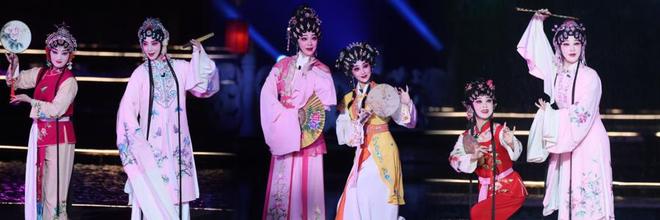 整场演出依托实景舞台,巧妙融汇水景、园林等自然意象,营造出“人入画中、戏在景中”的沉浸氛围。灯光与舞美亦取法写意美学,将传统意蕴融入现代视觉语言,构筑出虚实交融、中西合璧的诗意空间。