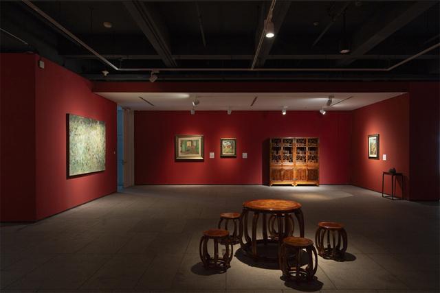 潘玉良的《青瓶红菊》被摆放于玻璃柜中,打上了追光灯,成为展厅中的明星展品之一。中国第一代留洋女性艺术家潘玉良,她坚持将西画与中国传统结合,创造出独特的艺术风格,被时人誉为“中国西洋画家中第一流人物”。菊花为花中四君子之一,具有高雅纯洁的象征意义,为潘玉良最钟爱的题材之一。《青瓶红菊》是潘玉良创作成熟期的作品,时值中国抗战存亡之秋,潘玉良受战火波及滞留海外,她以概括性的笔触和浓郁的色彩描绘了瓶中虽已无根系却仍旧灿烂盛放的菊花,清新隽永尽显高洁姿态,展现了她面对困境凌然无惧的心境与意志,以及对家国和亲人的深厚情思。