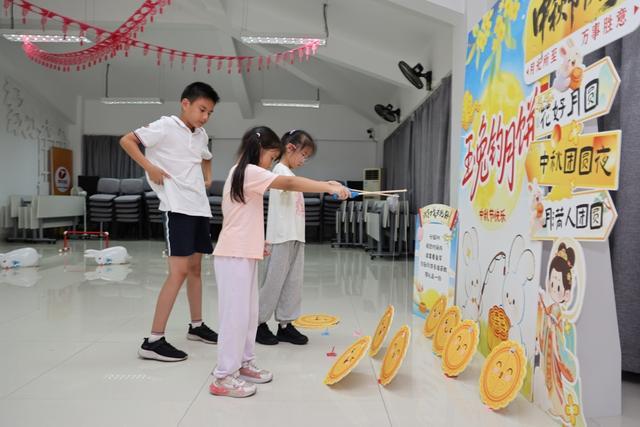 趣味游艺阁的闯关游戏让各个年龄段的参与者都过足了瘾。钓月饼摊位前,有人屏息凝神操控钓竿,眼看“月饼”即将上钩却突然滑落,引来善意的哄笑;灯笼下的灯谜纸条前,老少搭档热烈讨论,“‘十五的月亮’打一成语,是不是‘正大光明’?”答对的居民笑容格外灿烂;“玉兔”进“月宫”游戏中,大家挥动蒲扇指引“玉兔”前行,现场笑声此起彼伏。