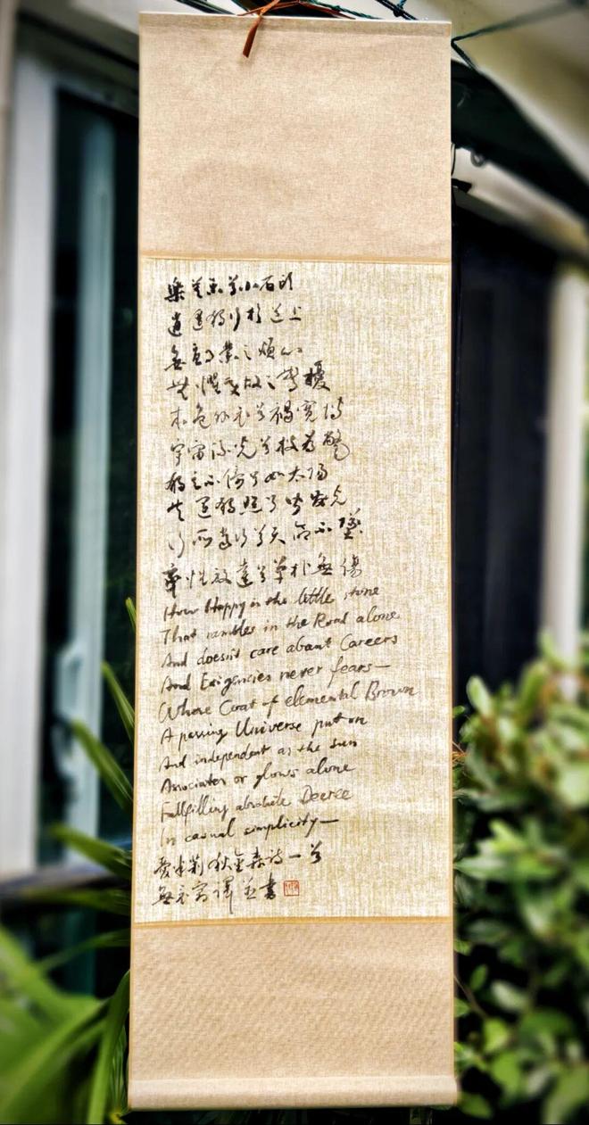 这两天根据课上所讲意思,写成了一篇文章《生死在道》,分享给大家。其中,艾米莉两首诗的译文是我的试译,英语原文在我的视频号中有乐乐朗诵的版本,配图书法是其中一首诗的译文和英语原文: