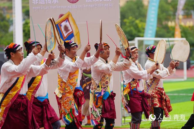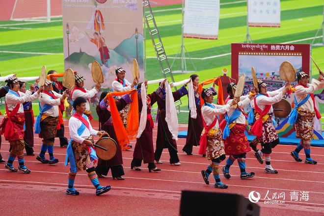 人民网同仁8月9日电 (记者杨启红)鼓点铿锵、舞姿豪迈,热闹非凡……8月8日,“非遗传承·赓续文脉”同仁市2025年国家级非物质文化遗产热贡六月会首届展演活动举办,来自青海省黄南藏族自治州同仁市各乡镇的22支表演队伍,1900余名群众参与盛会。