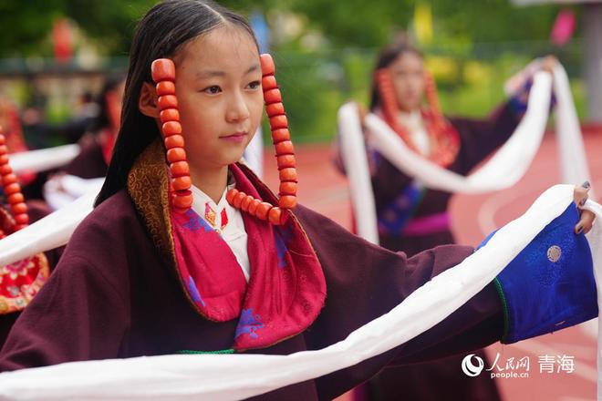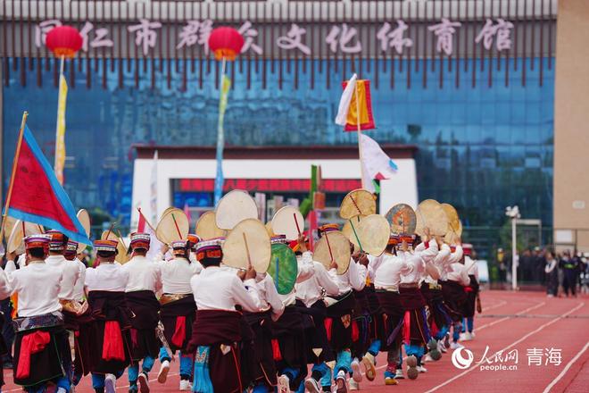 同仁市各乡镇表演队伍入场表演。人民网记者 杨启红摄