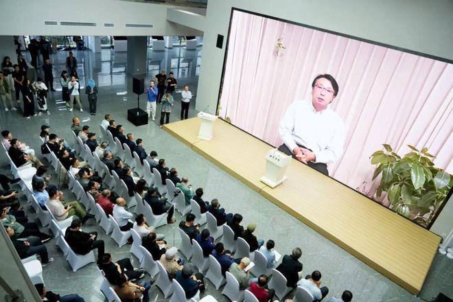 开幕式正式开始之前,首先观看了本次展览学术主持于洋发来的祝辞短片,他通过视频介绍了此次展览的学术水平和艺术价值,表达未能亲临现场的遗憾,预祝展览圆满举办。