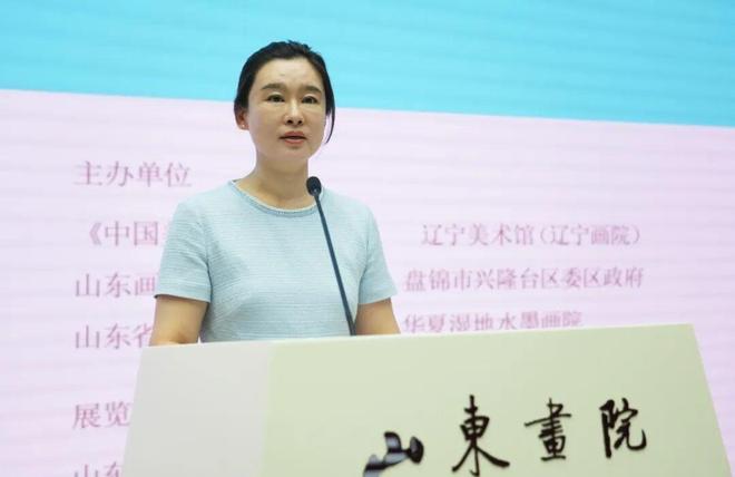 郭兴文厅长代表嘉宾致辞,他盛赞了济南作为历史文化名城的独特魅力,称此次展览选址济南,既契合城市文化气质,也为艺术传播搭建了优质平台。 此次展览名家云集,共展出71位艺术家的160余幅精品力作,涵盖山水、花鸟、人物等多个题材,作品既彰显传统笔墨功底,又融入当代艺术理念,兼具学术深度与观赏性,更实现了辽鲁两地地域文化的碰撞与交融,成为南北文化交流的重要契机。同时,郭厅长高度肯定华夏湿地水墨画院三年来在艺术创作、文化传承方面的显著成果,最后衷心祝愿展览圆满成功,并向在场嘉宾致以双节的美好祝福。