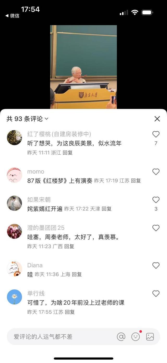 近日,南京大学的昆曲课堂又一次火出圈了!苏州大学教授、昆曲大师周秦“空降”南大苏州校区,一曲笛声婉转,瞬间把大家带进了杜丽娘的“似水流年”。朋友圈直接刷屏,网友狂呼:“果然还是要考到好学校啊!”视频里,鹤发童颜的周秦教授手持竹笛,现场演绎《牡丹亭·皂罗袍》,随着悠扬婉转的笛声传出,让人隔着屏幕都能被这“神仙”课堂所吸引。有网友直接破防:“听了想哭,为这良辰美景,似水流年。”
