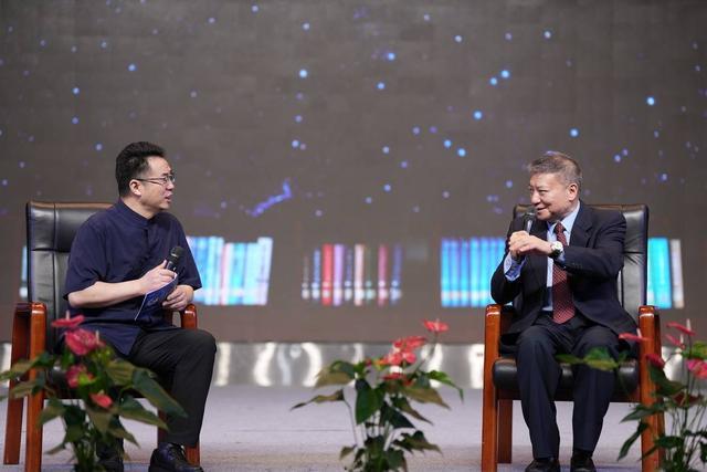 在讲座开始的导讲环节中,霍巍教授与主持人海光展开对谈,分享了自己与三星堆的不解之缘、考古工作的乐趣,并为有志于从事考古相关工作的青少年学子提供了宝贵建议。