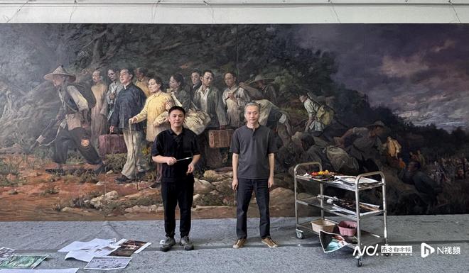 近日,南都记者走进广东画院画室,见证了这幅长卷式巨作的收尾,并采访艺术家,揭秘创作背后的故事。据透露,今年10月,它将亮相 “其命惟新——广东美术百年大展” 上海站,让更多观众透过画布感受那个惊心动魄、危难与希望并存的时刻。