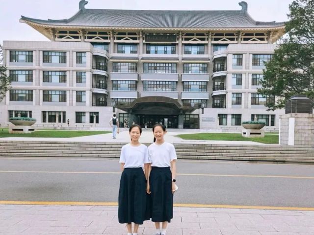 宋其真(右)、宋其优(左)在北京大学图书馆前