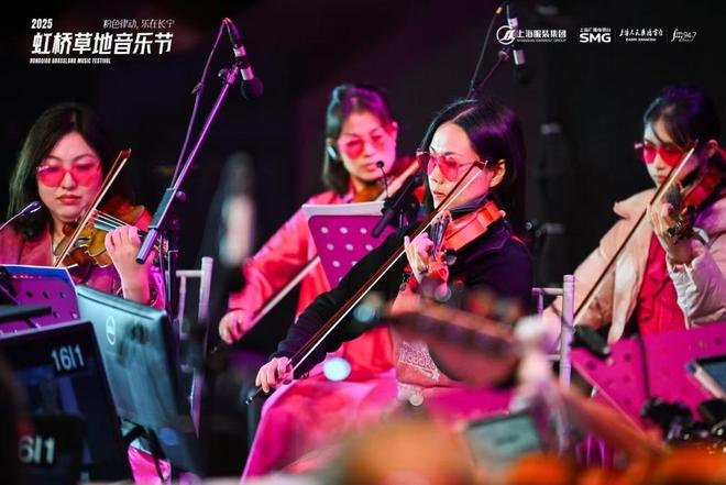 2025虹桥草地音乐节由上海服装集团、上海人民广播电台经典947音乐频率携手呈现,两日演出均主打时尚潮流元素,首日演出由百老汇女子乐团创始人梅西·施密特指挥“粉色女子交响乐团”演奏,为观众带来一场“粉色盛宴”,观众可以在聆听交响乐团演奏的《芭比》电影音乐的同时,也在大屏观看电影的精彩片段。