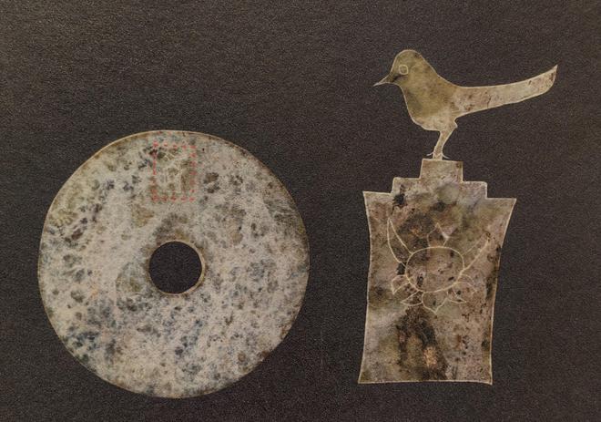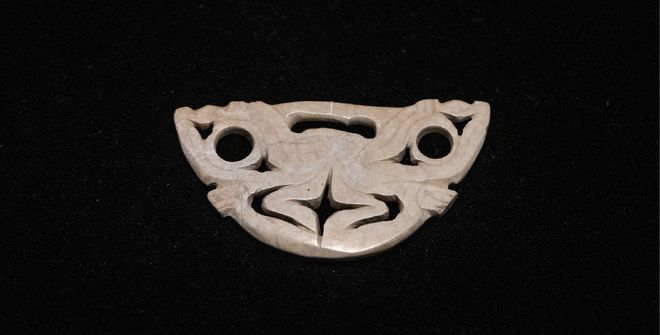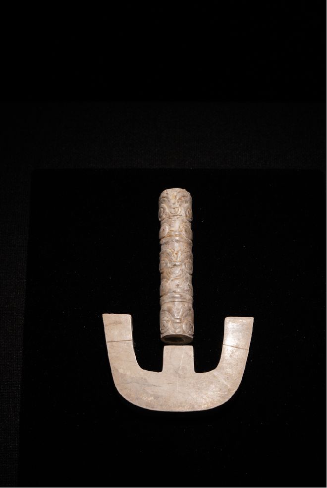 良渚遗址出土的龙首纹玉管、玉三叉器组合