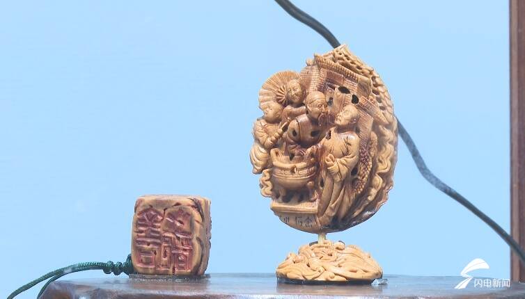 参赛作品紧扣主题,充分展现陈介祺金石文化元素,具有较好的创新性、实用性及市场推广价值。潍坊市工艺美术大师李芳芳专门为此次大赛制作了一件蛋雕作品。她说:“我的蛋雕作品《万印楼》是用鸸鹋蛋进行雕刻的,采用的是光影雕的雕刻技法。通过这种写实的雕刻技法,雕刻出具有年代感的金石文化圣地。”
