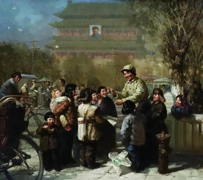 张京生、王元珍创作的油画《没有共产党就没有新中国》