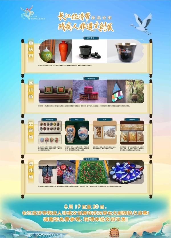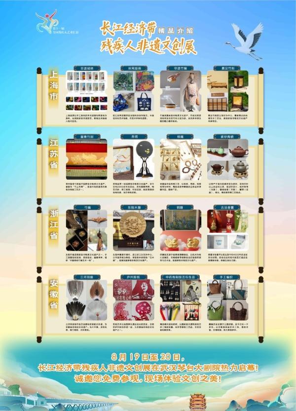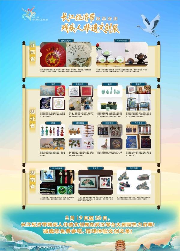 2025年8月18至20日,第十一届全国残疾人艺术汇演将在湖北武汉举行,长江经济带残疾人非遗文创展同期在琴台大剧院热力启幕,集中呈现来自上海、江苏、浙江、安徽、江西、湖北、湖南、重庆、四川、云南、贵州等11省市四十多项代表性的残疾人非遗文创精品。