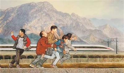 高铁进山啦(中国画) 蔡 超、边 涛、李鸿莉作