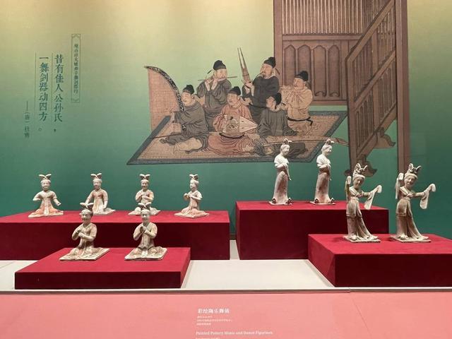 来自洛阳的三彩胡服武士俑、彩绘女骑马俑、各类金银茶具等展品,勾勒出唐人衣食住行的真实原貌;造型生动的彩绘陶乐舞俑、三彩骑马女俑等文物,一展大唐舞乐竞芳的宽松社会氛围;还有精美茶具、金银器,铺陈出丝路通达、多元并融的生活画卷……