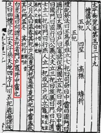 《太平御览》卷第五百二十九“五祀” [北宋] 李昉 著
