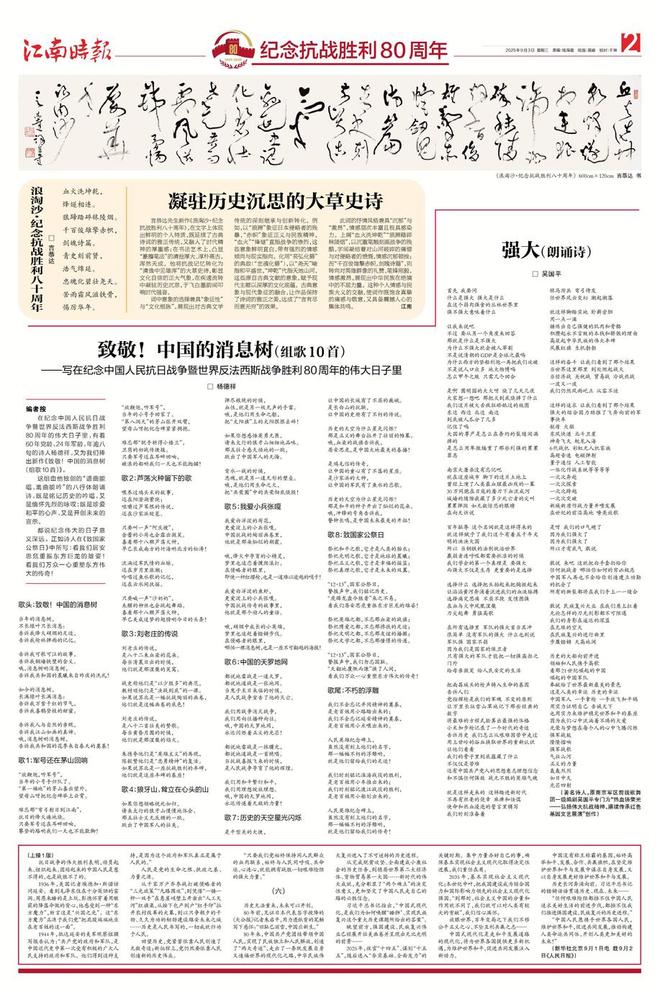 此词的抒情风格兼具“沉郁”与“激昂”,情感层次丰富且极具感染力。上阕“血火洗坤乾”“狼蹄踏碎秣陵烟”,以沉重笔触刻画战争的残酷,字间凝结着对山河破碎的痛惜与对侵略者的愤慨,情感沉郁顿挫;而“千百俊雄擎赤帜,剑魄诗篇”,则转向对英雄群像的礼赞,笔锋刚毅,情感激昂,展现出中华民族在绝境中的不屈力量。这种个人情感与民族大义的交融,使词作既饱含真挚的痛感与敬意,又具备震撼人心的集体共鸣。