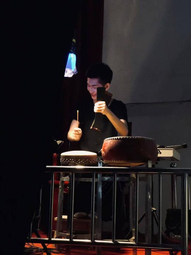20 岁的杨国庆是乐队鼓师,最初他也想过学台前表演,无奈嗓子条件不够,最终转身投入了打击乐的世界。