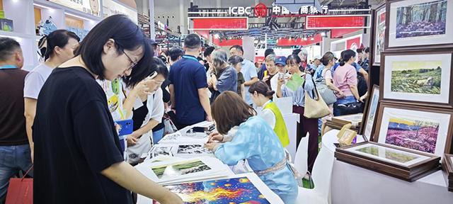 本届文博会上,扎鲁特版画展区里鲜明的民族特色与浓郁的地域文化气息,吸引了大批观众驻足观赏。现场展出的《金秋罕山》《牧野心曲》《心》《双骥呈祥》等100余幅版画作品,内容涵盖草原风光、民俗风情、生产生活及扎鲁特新年画等多个领域。每一幅作品都凝聚着创作者的心血与巧思,将扎鲁特地区丰富的文化内涵与独特的艺术魅力展现得淋漓尽致。不少观众被作品中醇厚的草原气息打动,纷纷与工作人员交流,表达对扎鲁特版画的喜爱与对北疆文化的向往。
