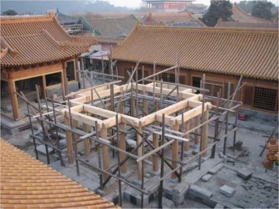 北京故宫中正殿修缮:层叠而上,柱额相交于一个平面(图片来源:赵鹏摄)