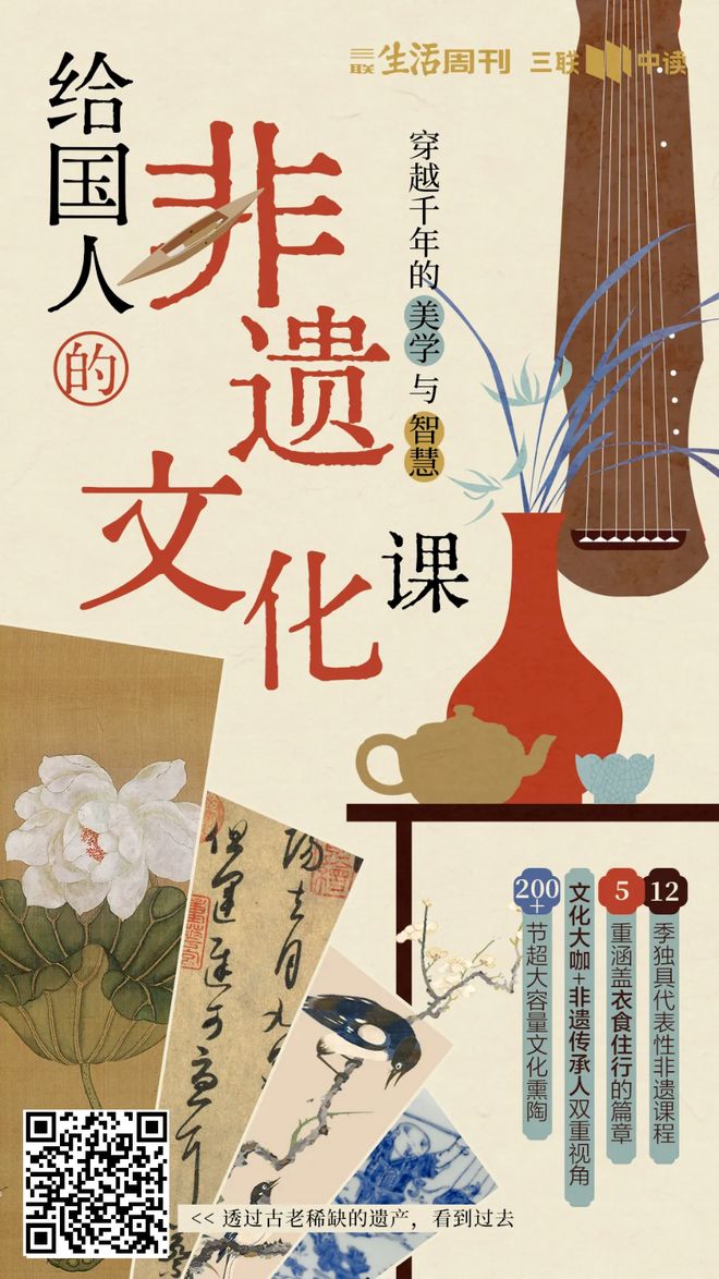与非遗文化有不解之缘的三联中读,推出了非遗系列课程《给国人的非遗文化课——穿越千年的美学与智慧》,用持续一整年的12季课程与你共同走近非遗直击灵魂的震撼。
