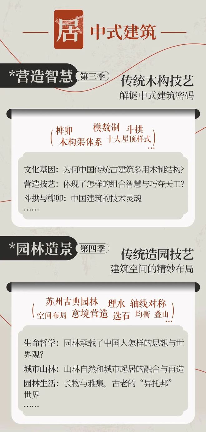 《非遗 | 榫卯的秘密——解读东西方木构建筑的“营造法式”》已经上线。除此之外,我们还准备了另外11季非遗文化课,共同收录在《给国人的非遗文化课》中。传统节日,桑蚕丝织,漆器,中国茶,书法,园林,酒之道,瓷器,金属器,昆曲……传承演变、文化内涵,一目了然。