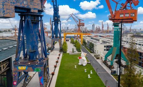 船台公园保留的中华船厂巨型塔吊、超大尺度的造船船台以及黄浦江边开阔的高桩码头等工业遗迹与周围自然环境景观相互呼应,在此,观众可以欣赏当代艺术的创新表达,也能感受复兴岛的历史厚重与神秘氛围。一系列设计工作室及青年建筑师的建筑更新与公共艺术装置,也可转化为可持续利用的空间设施,在艺术季结束后持续服务于广大市民。