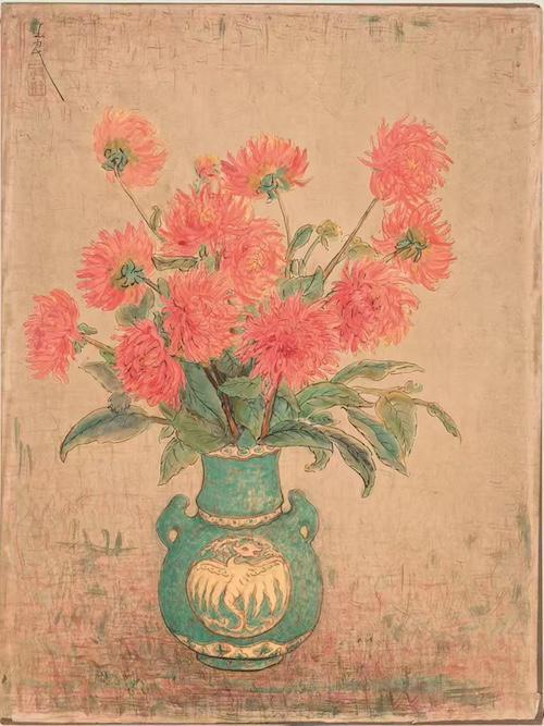 展出作品年代跨越20世纪中叶至今,亮点展品包括潘玉良《青瓶红菊》、周碧初《秋波双亭》、罗中立《喝水的农民》、王劼音《秋色》等。