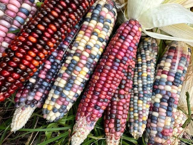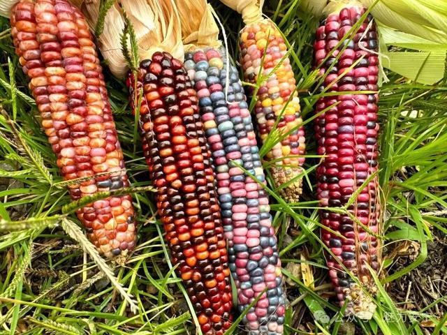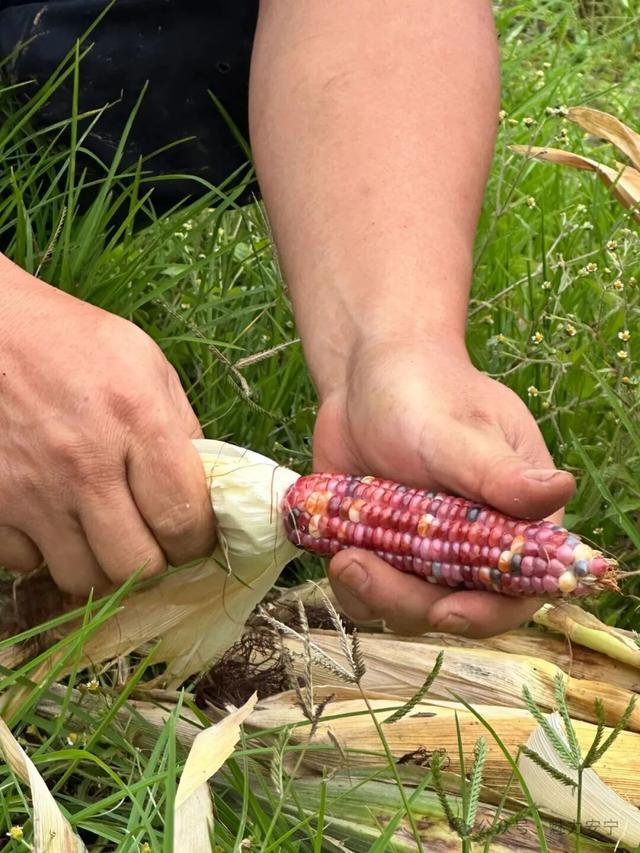 掰下玉米,褪去外壳,形如玛瑙的玉米粒逐渐露出“真容”。有的红如鸽血、有的紫如葡萄,还有的一根玉米上就有蓝、粉、紫、白等多种颜色,“开盲盒”的形式大大提升了采摘的乐趣。