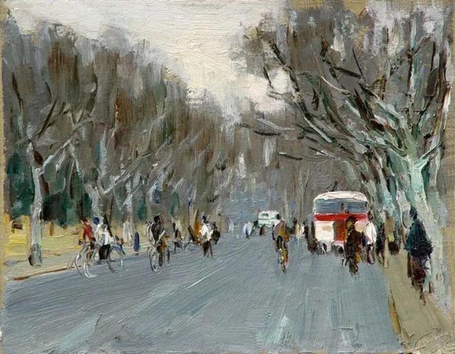 美院门口南山路,1979年,纸板油画