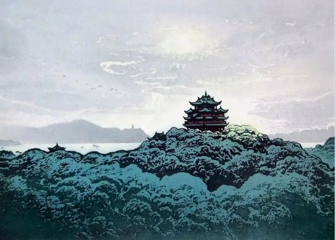 吴山天风,41x 61cm,2001年-2018年,套色水印木刻