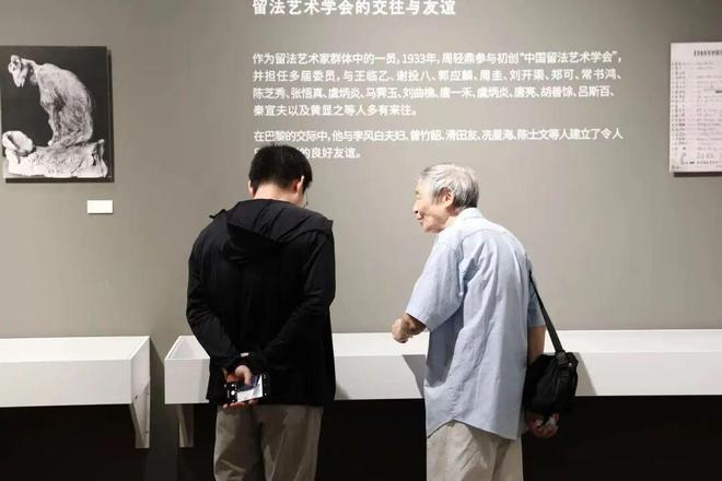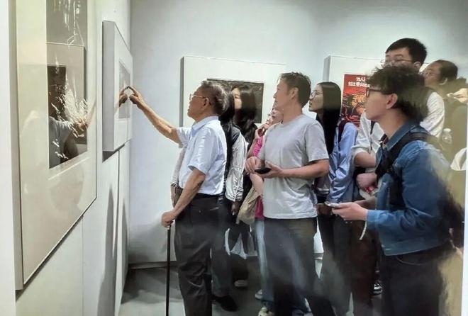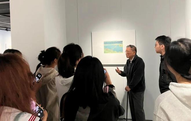 2024年9月中国美术学院版画系主任于洪带领研究生在国家版本馆杭州分馆参观《剞劂出清流》陆放捐赠展时时,陆放先生为同学讲解水印版画