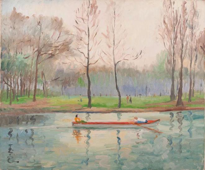 1936年法国《带薪假期法》颁布后,海滨度假成为新兴潮流。这种转变重塑了法国社会生活方式,使原本贵族专属的海滨城镇逐渐转变为全民度假胜地。潘玉良旅居巴黎期间的风景写生多聚焦公园、酒吧、海滩等日常休闲场景,客观呈现了带薪休假普及后的假日文化。