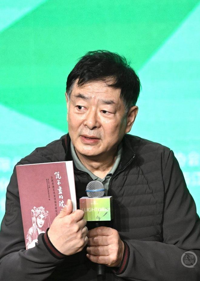 而说到“真感受”时,濮存昕更是摇身一变成了一个“粉丝”。他拿出随身携带的《说不尽的沈福存:京剧表演艺术家沈福存研究文集》一书,多次向现场的青年戏剧工作者“安利”重庆京剧大师沈福存。“沈福存老师让重庆人跺脚、拍巴掌的,就是他的表演真实。他能把真实的东西在托腔、过门中塑造人物。他塑造出的真实感是观众的‘感’。”