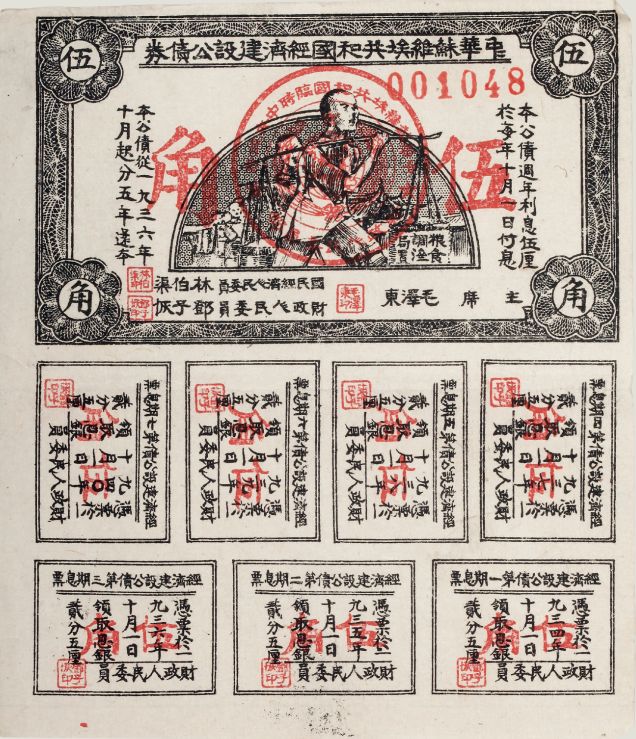 中华苏维埃共和国经济建设伍角公债券,1933年,长110、宽127毫米