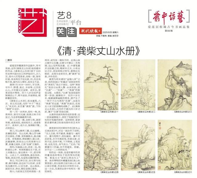 爱莲居珍藏龚贤作品数件,有书有画,这件《龚柴丈山水册》是其最早的作品。《龚柴丈山水册》曾于1929年由神州国光社以珂罗版印行,计八页,其中六页笔简者,风格一致,皆有印章,其余两页不仅无款、印,而且风格不类,疑为后人增补,故本文不录。