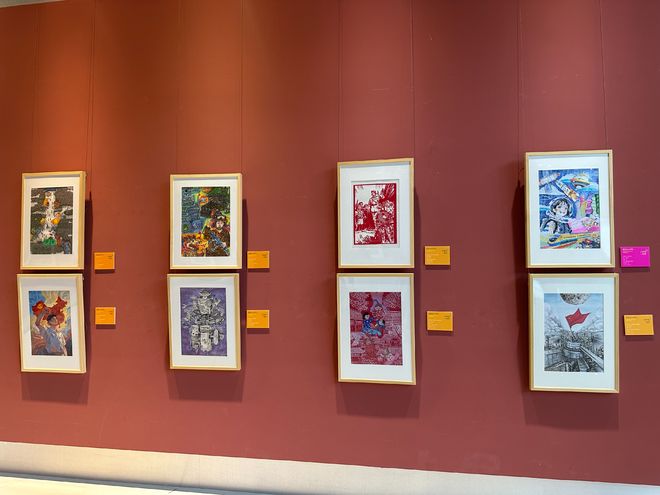 二是参与对象具有区域的广泛性,客观反映了江苏学校美育教育成效。此展面向全省中小学学生征稿,13个设区市中投稿最多的1129件,最少的97件,覆盖苏南、苏中、苏北90余个县(市区)、1400余所中小学校,在区域上具有广泛的代表性。作品涵盖国画、油画、水粉画、版画、各体书法、篆刻等多元艺术形式。作者最小的7岁、最大的18岁,大部分是小学、初中学生。从他们创作的作品中,虽看不到宏大的历史叙事,但却能感受的到他们围绕“珍爱和平、强国有我”主题,以童真的视角、质朴的表达,让我们看到了传承抗战精神的“火种”,看到了优秀传统文化的传承接续,看到了校园美育浸润取得的成效。同时也看到了不同区域间、校际间学校美育工作开展的不平衡性。