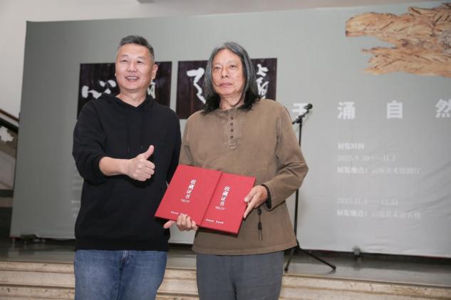 开幕式后,学术研讨会同步召开。来自省内外的艺术评论家、高校学者与云南大学设计与艺术学院、昆明传媒学院等师生代表,围绕于涌的艺术创作展开深入研讨。云南省美术家协会主席罗江评价,于涌的创作扎根中国玩木、赏石传统,同时吸收西方抽象艺术与现成品艺术精华,以刮、削、钻、钉等多样手法处理木、石、残陶等材料,既保留材料天然形态,又赋予其艺术巧思。
