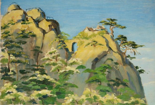 《鹫峰写生》 板面油彩 20.3cm×29.1cm 1955年