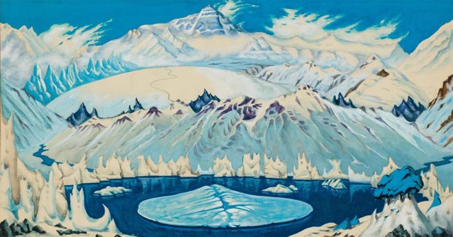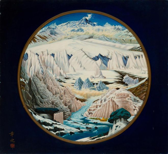 《雪山冰湖壁画稿》 纸本水彩 36cm×67cm 1977年