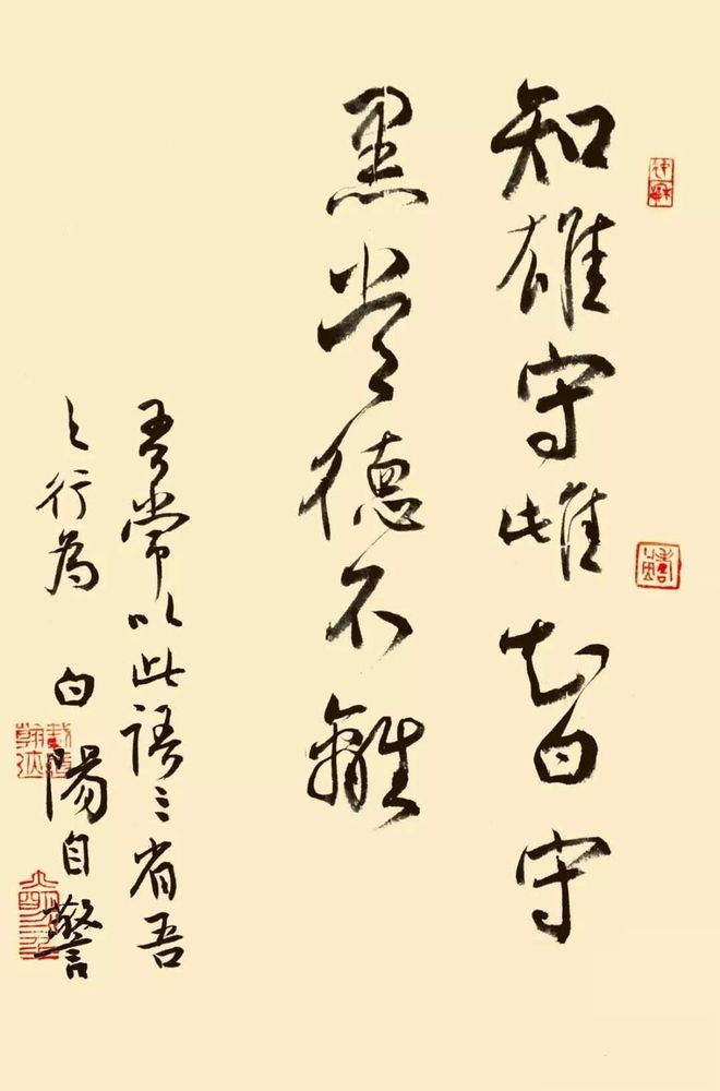 老子说,“知其雄,守其雌”“知其白,守其黑”“常德不离”(《老子》第二十八章)这是社会之道,天下大道,更是艺者为艺之道。什么意思?就是说为人立身处事,先要把定自己,把准自己,知己长处,也要知己短处,知己可昭示众人之处,也要知己不能应对众人之处。唯能正视短板,柔软身段,柔弱心态,才能永葆强大。以柔弱示天下,不是虚伪,是无损他人之心,无害他人之意。老子说,这就是“常德”,就是“常德不离”。人有德,有常德,而且又是“常德不离”,这就是得道之人,是最强大的人。如此君子,社会大众,各色人物中都有。人们真正服气的,是人的谦虚谨慎。一个艺术家,一个书画家,要想被社会认同,长久地被社会关注,被社会大众喜欢,也被艺术领域、书画领域的同行同道肯定,在行业内站住脚,被广大观者支持,就应该勤于修心炼性,学会谦虚谨慎。