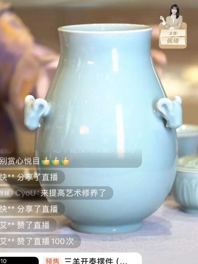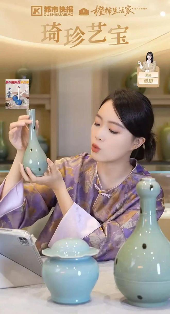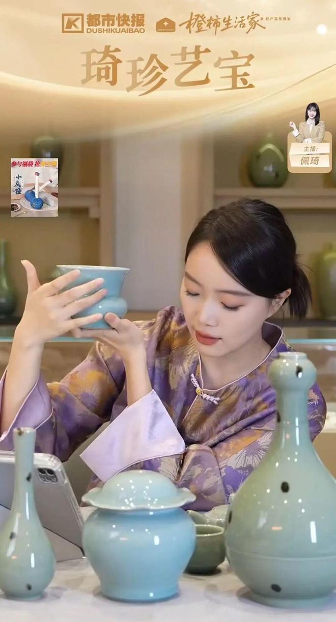 ▲10月26日主播佩琦在直播间展示本次众筹的柴烧款式。