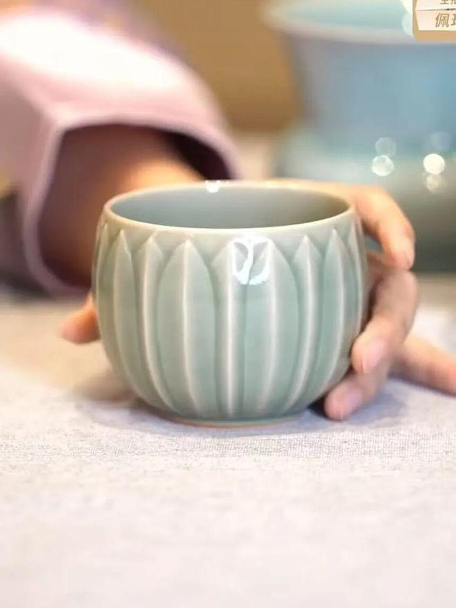 一手可握,盈盈有余的口杯,用起来非常顺手,喝起来特别爽心。周身饰以莲花瓣,高洁、大方。