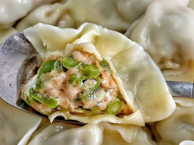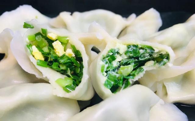 秋季的韭菜鲜嫩味浓,谐音“久财”,寓意福泽绵长、亲情永续。搭配金黄鸡蛋,素馅清鲜。调馅时先用油锁住水分,临包前再加盐,保持翠绿不出汤,让每一口都是秋天的鲜香。