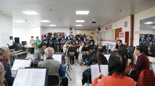 这支乐团没有门槛,成员基本都是六七十岁的老人。王绍曾常说:“只要真心对待音乐,谁来都欢迎。”团里的规矩就四条 ——爱好、自愿、奉献、无私。前后算下来,进进出出的成员有200多人,流动性虽大,却始终聚着一股热乎气:“有人来了,从不会演奏到会演奏;有人离开,音乐也能帮助他陶冶情操。”至于训练方式,王绍曾运用 “以曲代功” 的法子:“业余有业余的练法,通过排演当周的曲子,慢慢把基本功磨扎实,大家也学得有劲头。”
