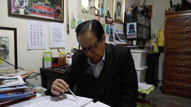 王绍曾正在修改乐谱。新华社记者 张哲 摄