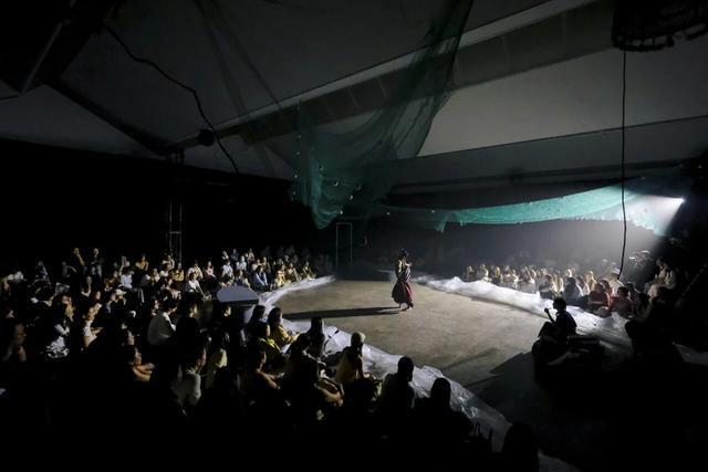 “这个剧场对我们来说是巨大的挑战。”区别于常规剧场,由粮仓改造而来的舞台有着异于寻常的挑高和四面紧绕的观众排布,演员游走于人群之中,每一次呼吸、每一个眼神,都会被咫尺之隔的观众清晰捕捉。