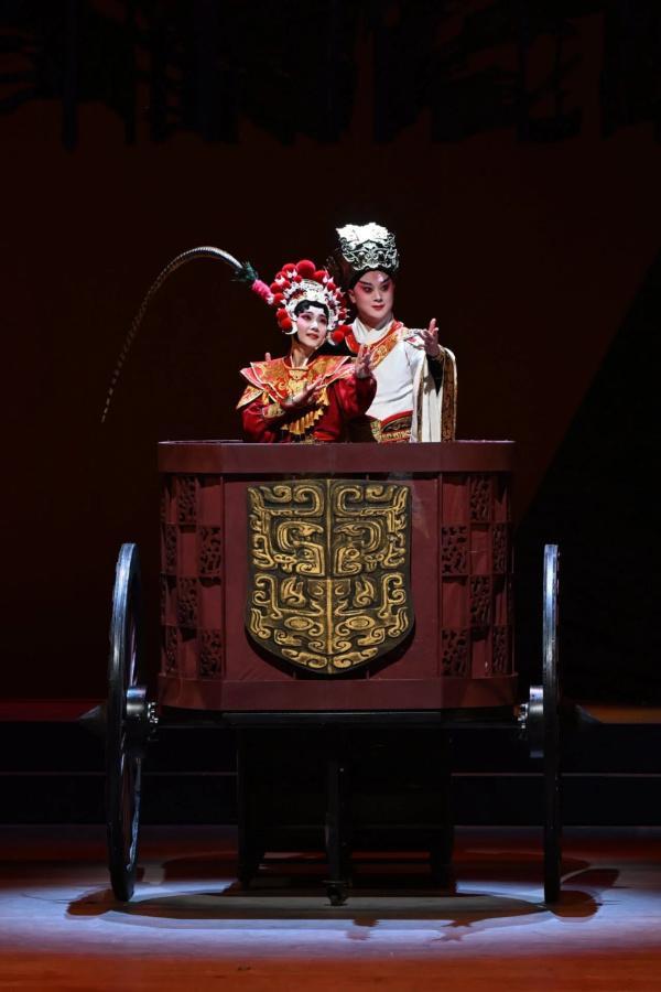 一级演员朱冰贞塑造的妇好,以闺门旦之身突破表演范式,将刀马旦的凌厉劲道融入细腻身段,尽显巾帼豪情。她与饰演武丁的二级演员王琛的对手戏更是丝丝入扣,诠释出帝后、夫妻间细腻而复杂的情绪,诠释出“大爱安邦”的主题。