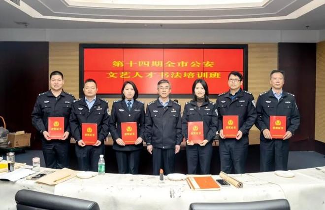 ▲市公安局党委委员、政治部主任王中文专程看望、慰问授课教师和学员,并为在“迎国庆、保平安”全市公安机关书画摄影展览中获奖学员代表颁发证书。
