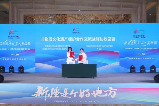 新疆维吾尔自治区文化和旅游厅代表董燕女士在接受媒体采访时表示,此次新疆与苏州签订《非物质文化遗产保护合作交流战略合作协议》,核心意义在于搭建两地非遗保护深度合作桥梁,以“优势互补、互利共赢”推动新疆非遗创造性转化与创新性发展,同时为文化润疆、旅游兴疆战略落地提供实践支撑。